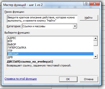 Если есть необходимость указать в названиях списков несколько слов, нужно соединить эти слова нижним подчеркиванием ( _ ), т.к. в данном случае Excel не позволяет использовать разрывы (Например "Автомобиль_Nissan"). А теперь займемся вторым столбиком. Для начала изучим функцию ДВССЫЛ Функция ДВССЫЛнаходится в списке функций категории "ссылки и массивы"