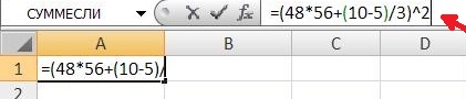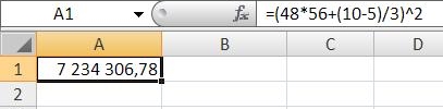 Можно произвести то же самое действие без заведения данных, участвующих в расчете, в ячейки. В этом случае вместо выделения соответствующих ячеек, цифры вводятся с клавиатуры.