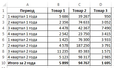 К примеру, мы имеем дело с отчетом по продажам за 3 года следующего вида: