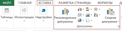 Графики и диаграммы находим в закладке "Вставка" основного меню: