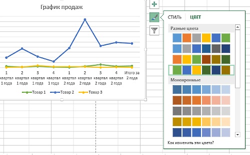 Для изменения внешнего вида используйте кнопочку стилей рядом с графиком: