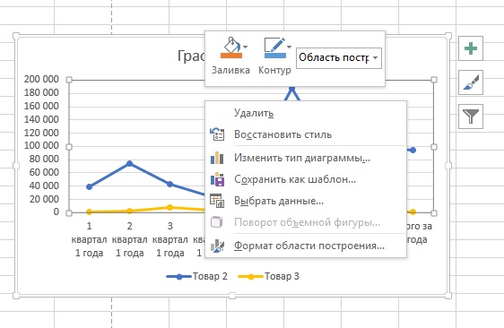 Любые изменения в график можно внести, нажав на правую клавишу мыши, стоя на графике: