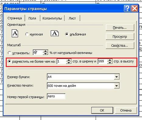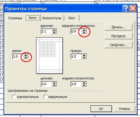 Первое, что можно сделать – это изменить расположение страницы с «Книжного» формата на «Альбомный». Нажимаем ОК и просматриваем страницу. Если она все еще не поместилась на листе, идем дальше. Меняем масштаб страницы. Для этого выбираем поле «разместить не более чем на … стр. в ширину и … стр. в высоту». Отмечаем нужной цифрой данные поля, выбирая их с помощью стрелочек, или заводим вручную. Чаще всего бывает нужно, чтобы страница располагалась на одной странице в ширину. В этом случае нужно проставить 1 страницу в ширину и проставить в высоту любое максимальное количество страниц. Excel автоматически разобьет документ на страницы. Регулировать расположение информации на странице можно с помощью закладки «Поля». Здесь можно изменять поля страницы с помощью стрелочек (обведены кружками), выбирая нужные цифры, а также центрировать документ на странице, отметив поля «горизонтально» и «вертикально».