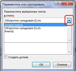 Нажимаем на стрелочку и выбираем в окошке "Переместить выбранные листы в книгу" - (новая книга)