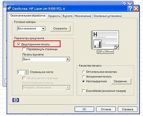 Ставим галочку в окошке «Двухсторонняя печать» и нажимаем ОК.