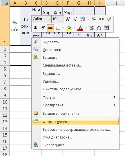 Для того, чтобы произвести указанное действие, выделяем шапку и, удерживая курсор на выделенном поле, вызываем меню правой клавишей мыши и выбираем «Формат ячеек».