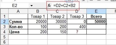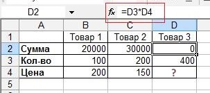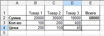 Составим таблицу с указанием цены, количества и расчетом суммы по каждому товару: