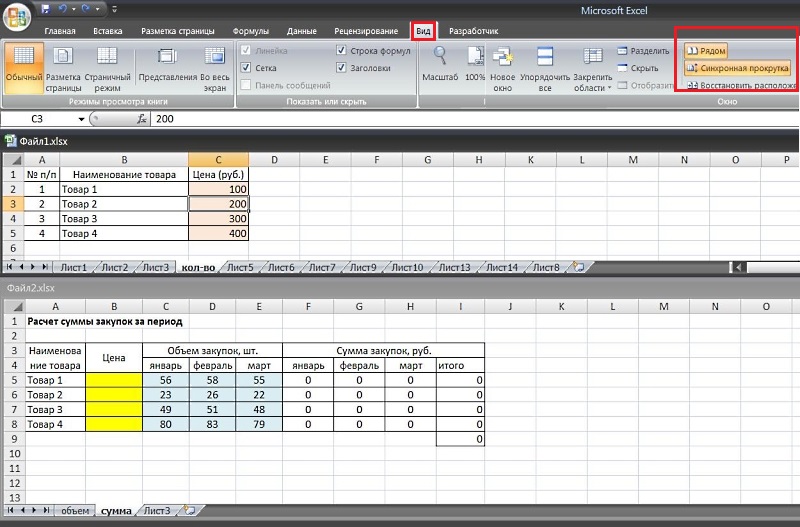 Как одновременно работать с двумя файлами в Excel 2007-2010-2013