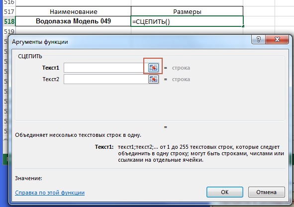 В выпавшем окошке нажимаем на кнопочки и выбираем по очереди ячейки, которые хотим объединить: