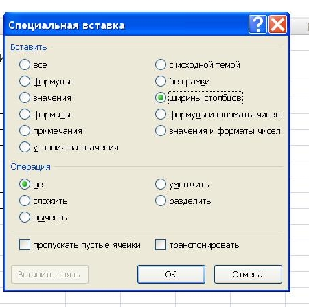 Специальная вставка. Как скопировать ширину столбцов таблицы в Excel 2007-2013