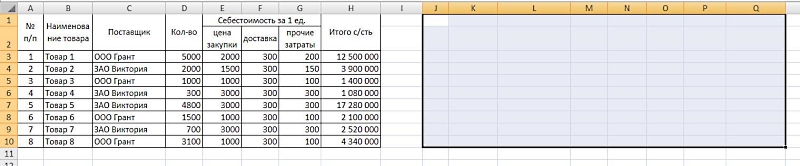 Предположим, что мы хотим скопировать таблицу, сохранив ширину ее столбиков.