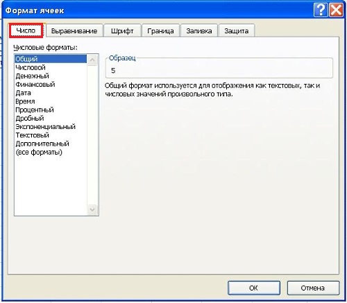 В закладке «Число» перечислены все возможные форматы, которые можно устанавливать с помощью программы.