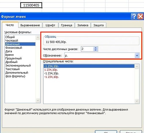 Формат ячейки, где будет указана сумма, должен быть обязательно «общим», «числовым», «финансовым» или «денежным».