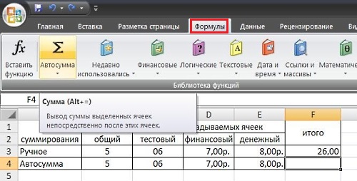 Сумма. Зачем нужны разные форматы и варианты их суммирования: автосумма и ручное суммирование в Excel 2007-2013